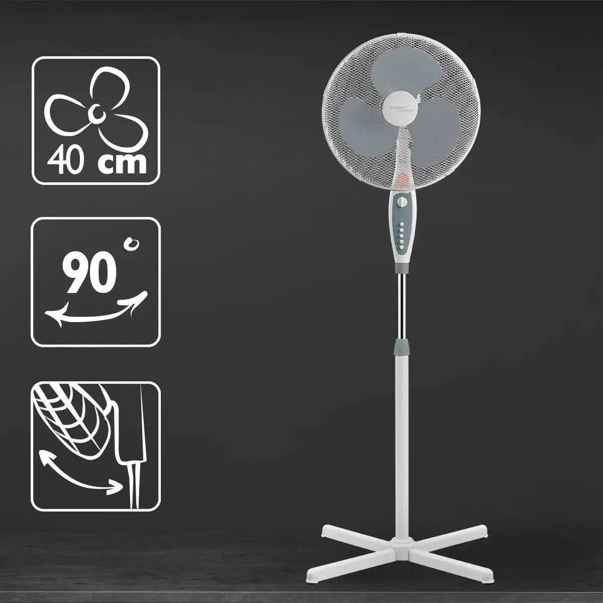 Вентилятор напольный Scarlett SC-SF111B24 45Вт скоростей:3 серый/белый