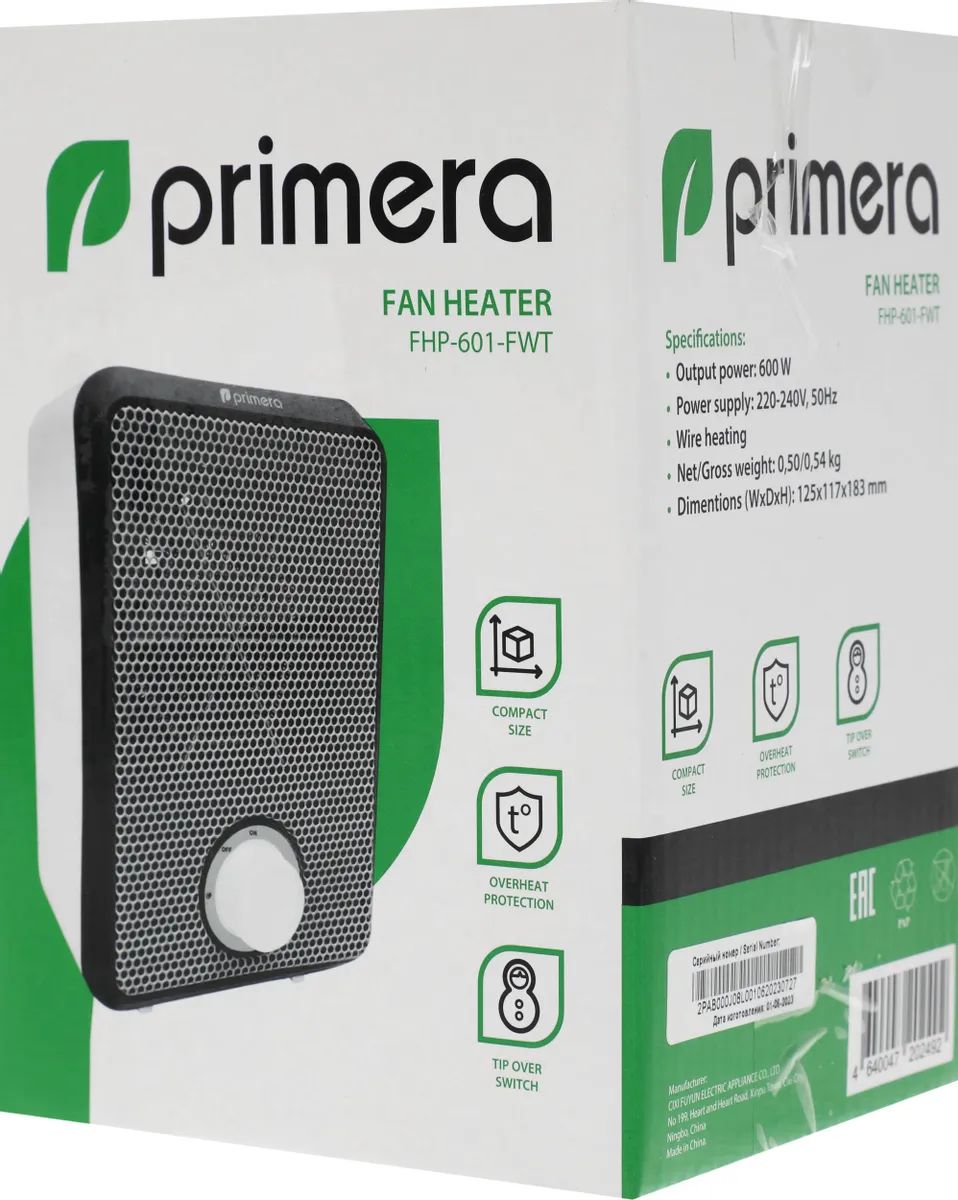 Тепловентилятор Primera FHP-601-FWT 600Вт белый/серый
