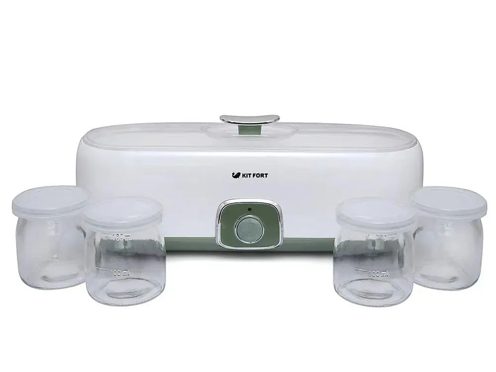 - Йогуртница Kitfort KT-2006 20Вт 4б. 180мл белый/зеленый