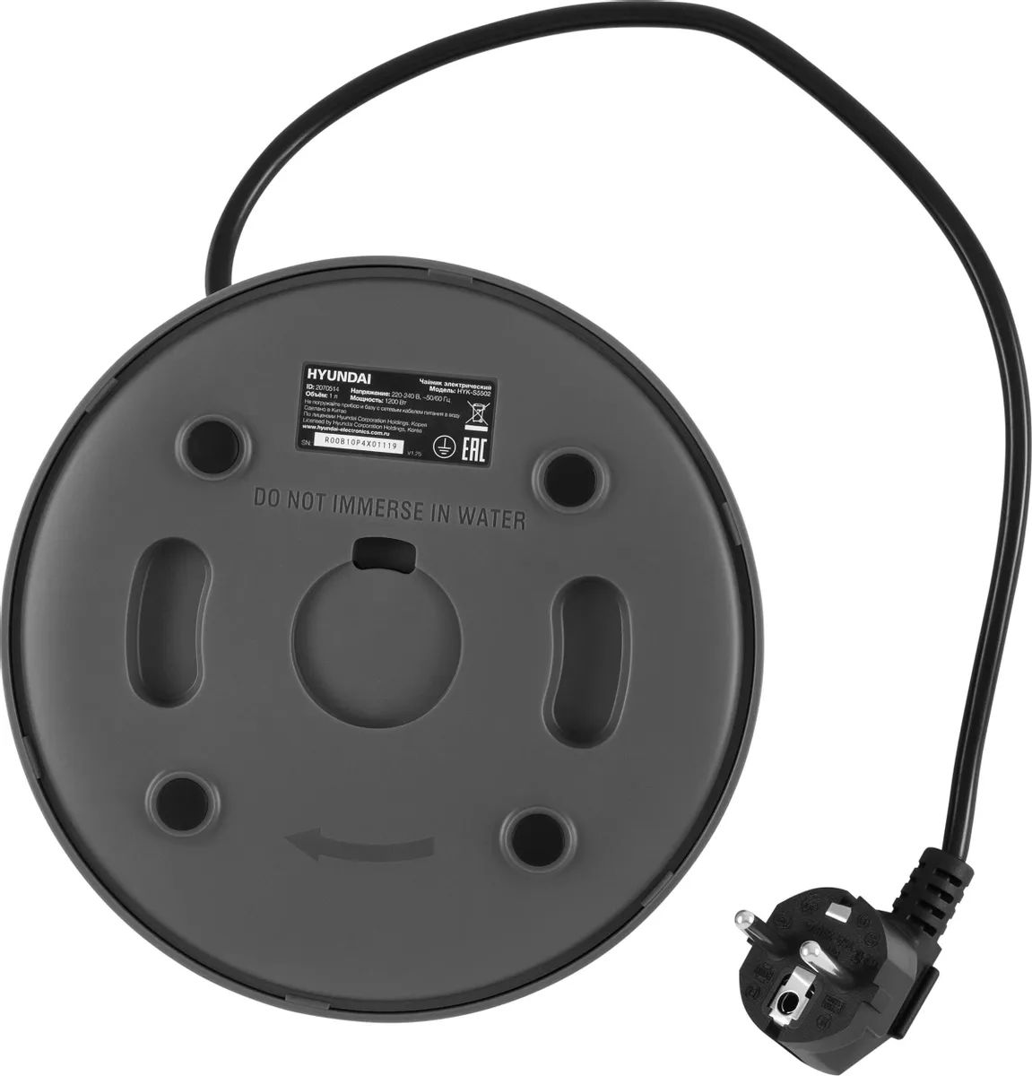 Чайник электрический Hyundai HYK-S5502 1л. 1200Вт титан/титановый корпус: металл