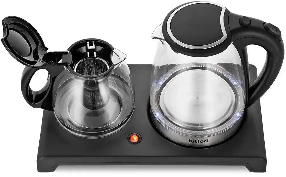 Чайный набор Kitfort КТ-6180 2л. 1500Вт черный (корпус: стекло)