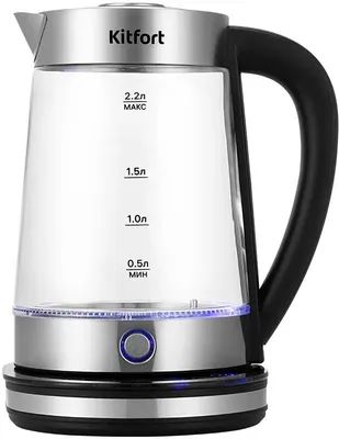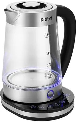 Чайник электрический Kitfort КТ-6764 2.2л. 1800Вт черный/серебристый корпус: стекло/металл/пластик (KT-6764)