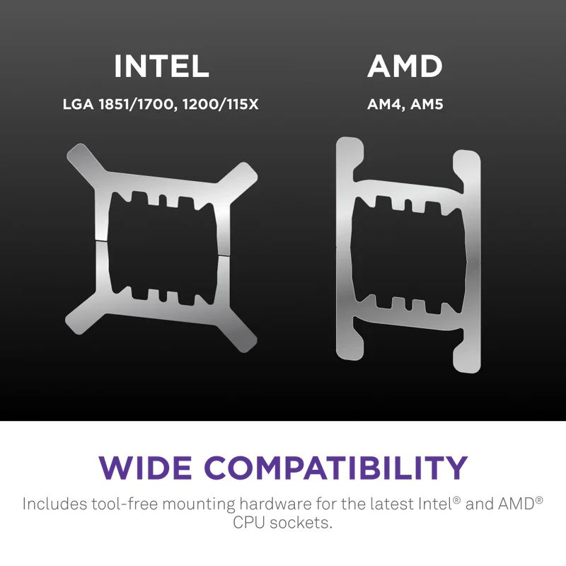 - LGA 1150; LGA 1151; LGA 1151v2; LGA 1155; LGA 1156; LGA 1200; LGA 1700; LGA 1851; AM4; AM5