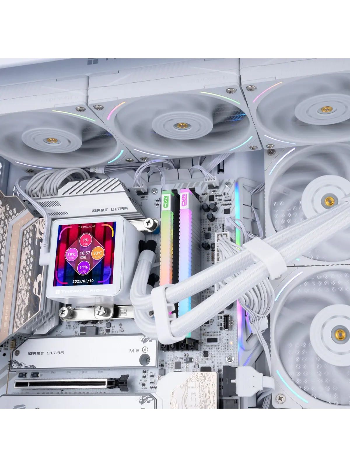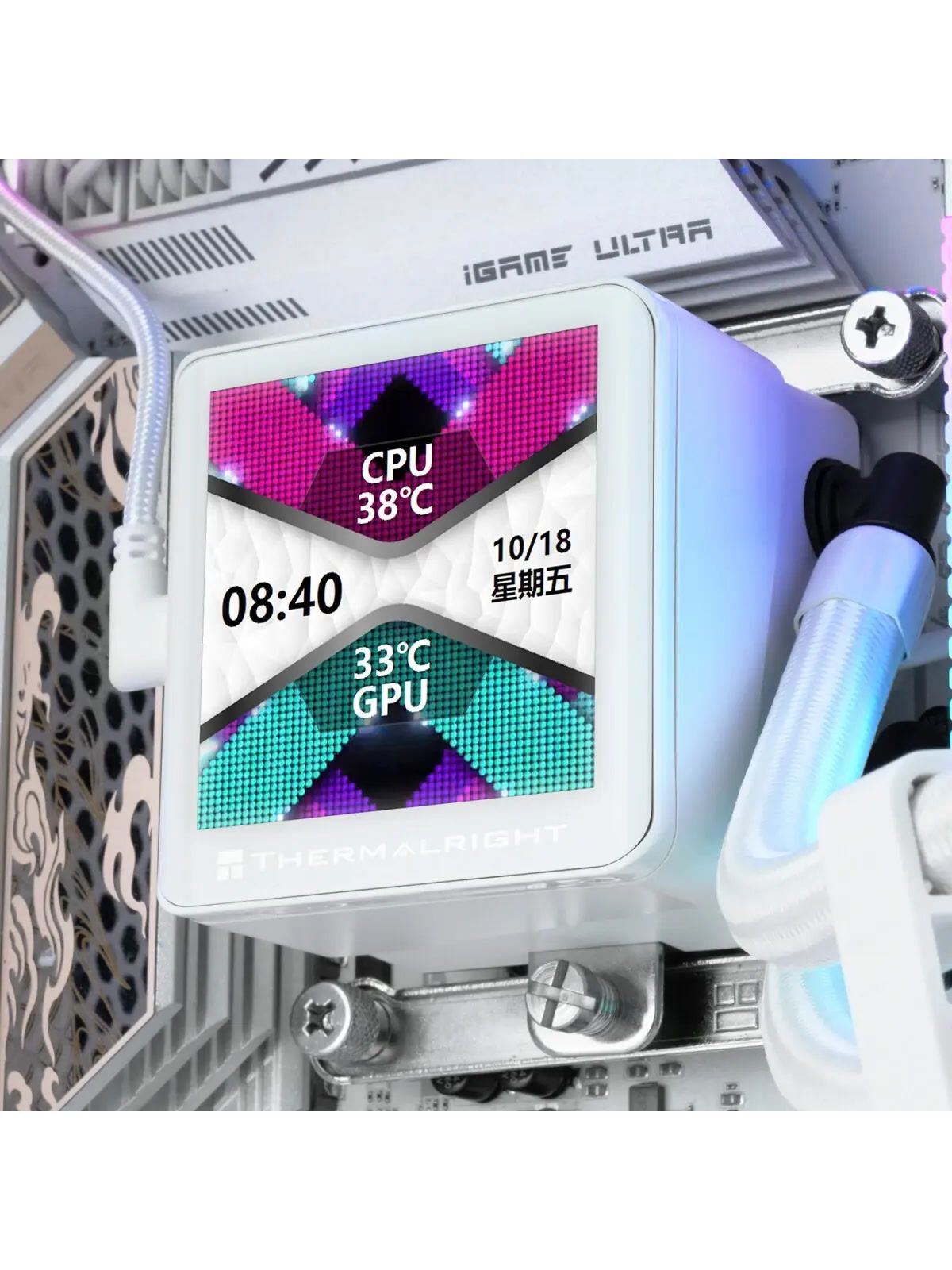 СЖО Thermalright Frozen Vision 360 V2 (360mm, LED, White, ARGB/ Fans: 3x120mm, 69CFM, 27dBA, 2150RPM/ Pump height 60mm, 23dBA, 3000RPM, Rad thickness 27mm/ S: 1700, 1200, 1851, 115X, 2011, 2066, AM5, AM4)