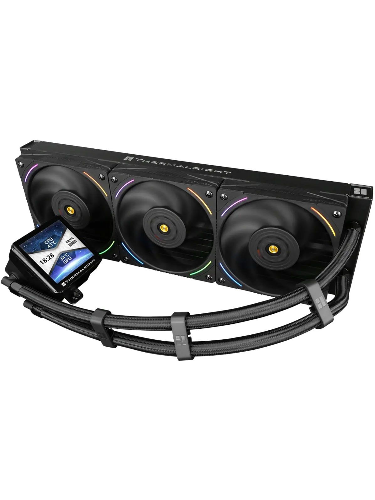 СЖО Thermalright Frozen Vision 360 V2 (360mm, LED, Black, ARGB/ Fans: 3x120mm, 69CFM, 27dBA, 2150RPM/ Pump height 60mm, 23dBA, 3000RPM, Rad thickness 27mm/ S: 1700, 1200, 1851, 115X, 2011, 2066, AM5, AM4)
