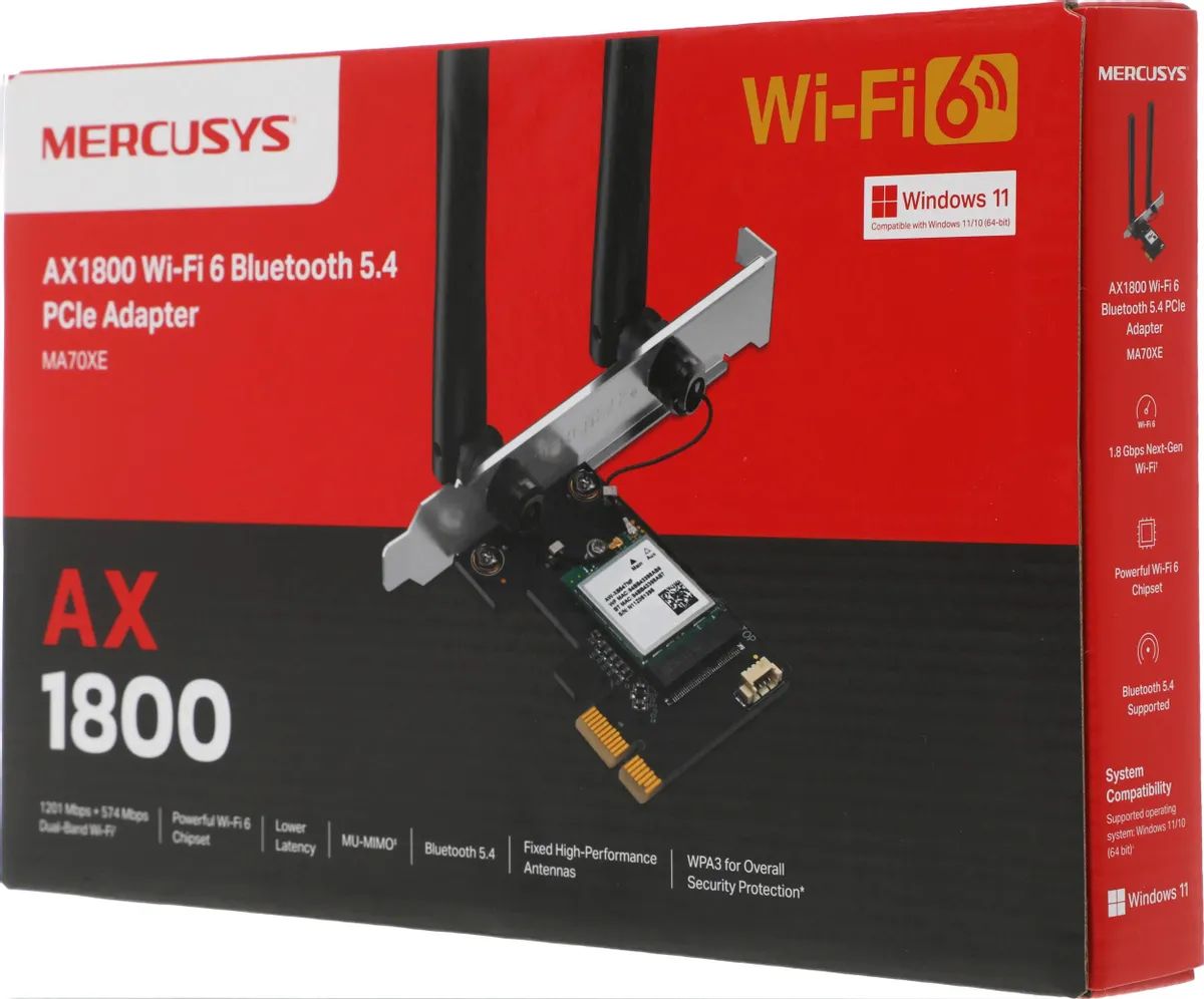 Wi-Fi + Bluetooth адаптер Mercusys MA70XE AX1800 PCI Express