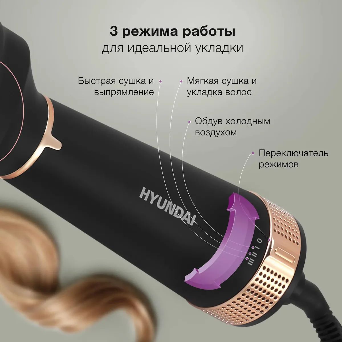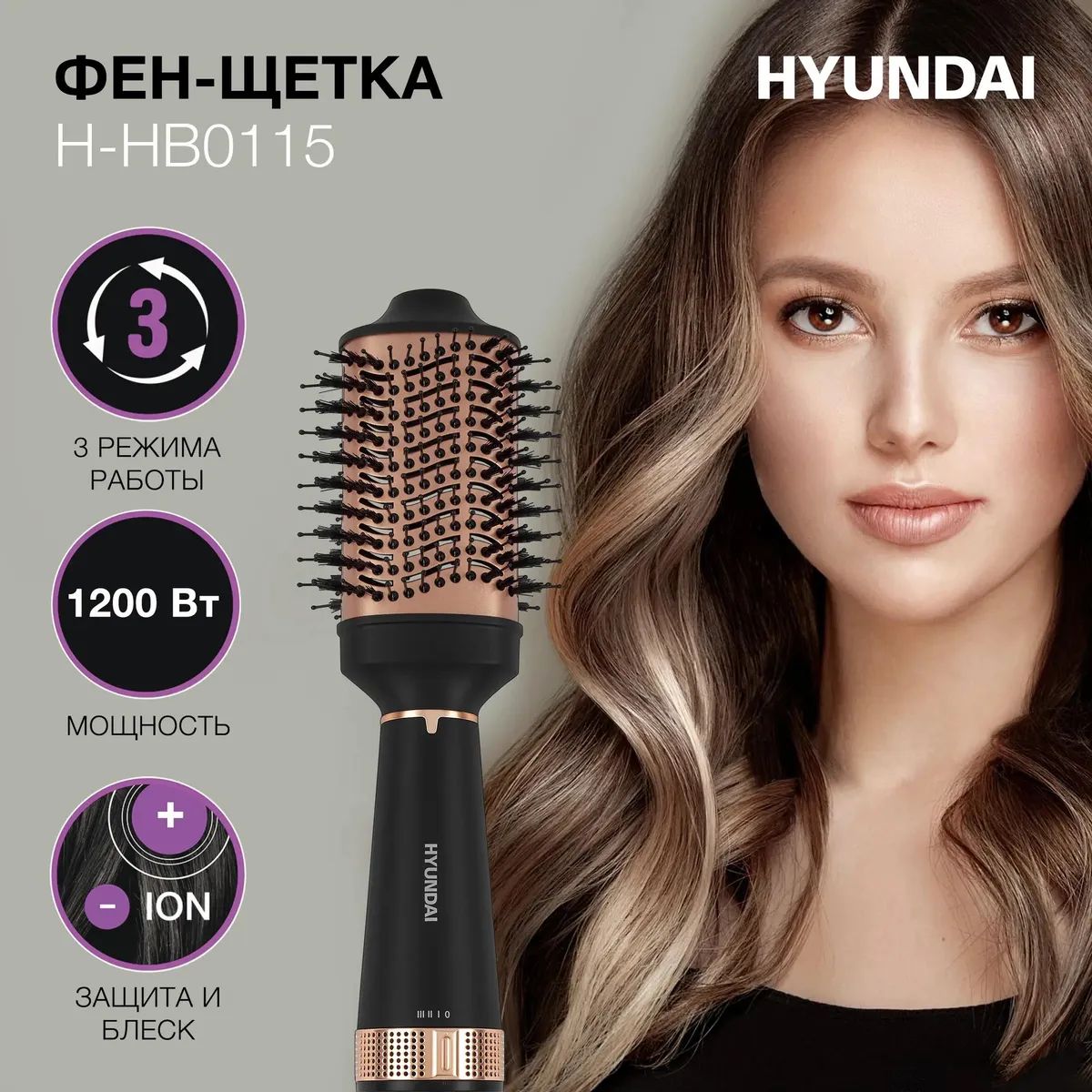 - Фен-щетка Hyundai H-HB0115 1200Вт черный