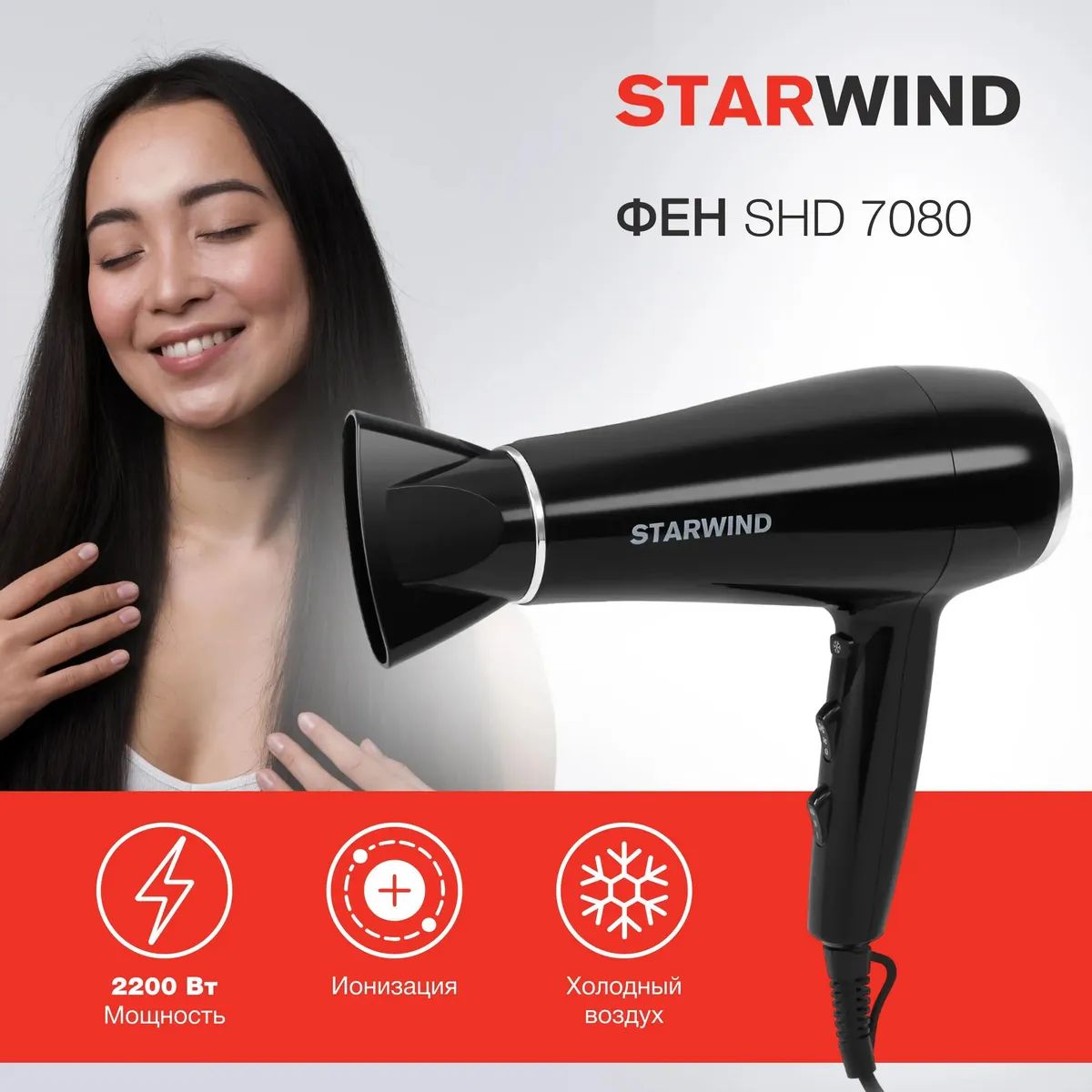 Фен Starwind SHD 7080 2200Вт черный/хром