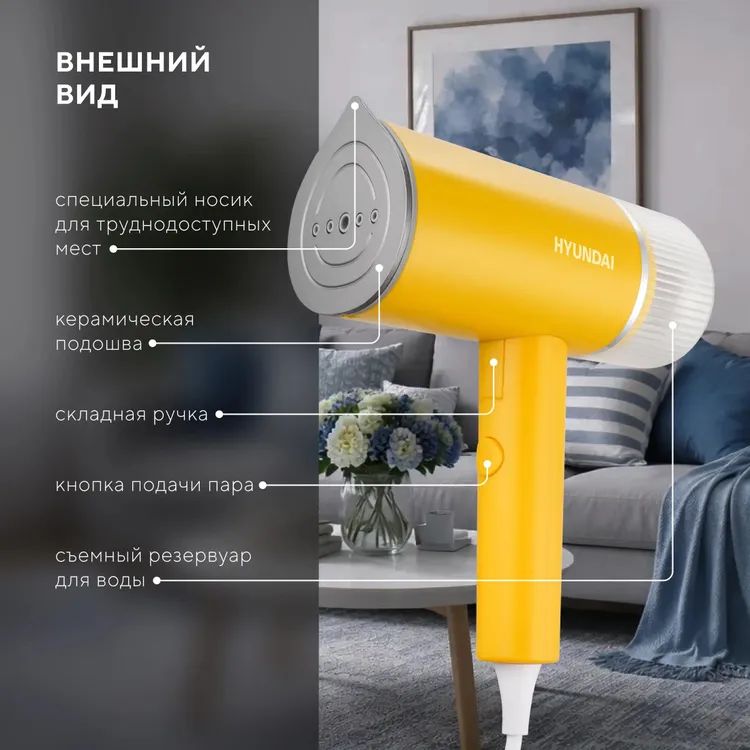 Отпариватель ручной Hyundai H-HSART003 1200Вт желтый