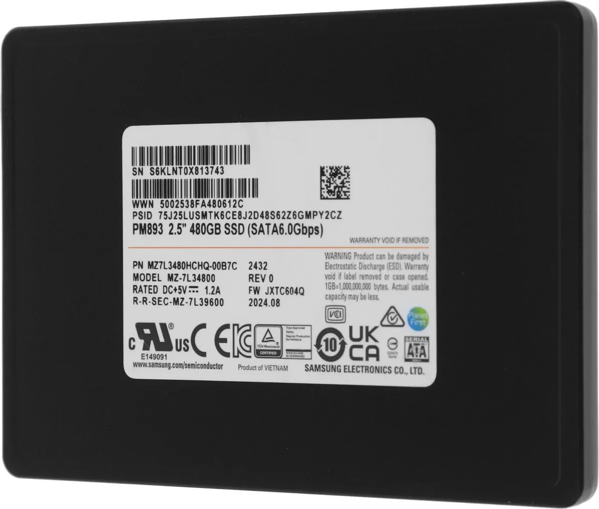 Накопитель SSD Samsung SATA-III 480GB MZ7L3480HCHQ-00B7C PM893 2.5" 1 DWPD OEM