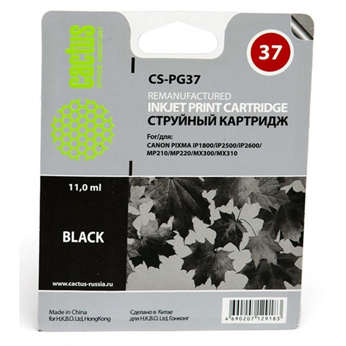 Картридж струйный Cactus CS-PG37 черный для Canon Pixma iP1800/iP1900/iP2500/iP2600/MP140/MP190